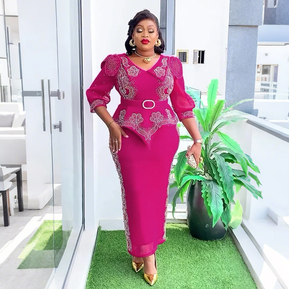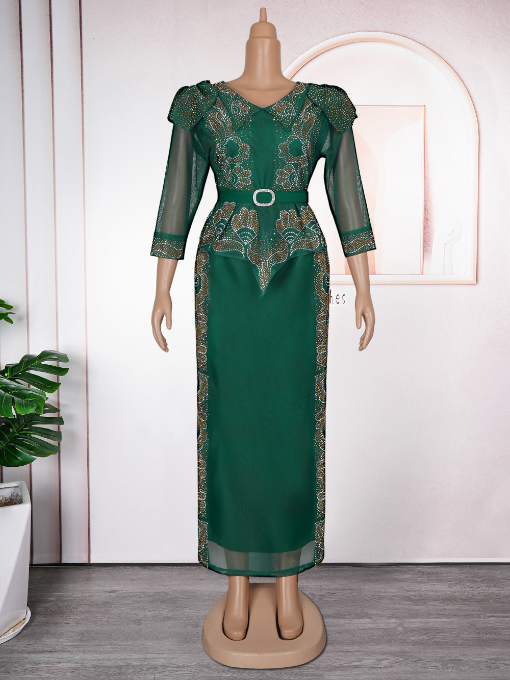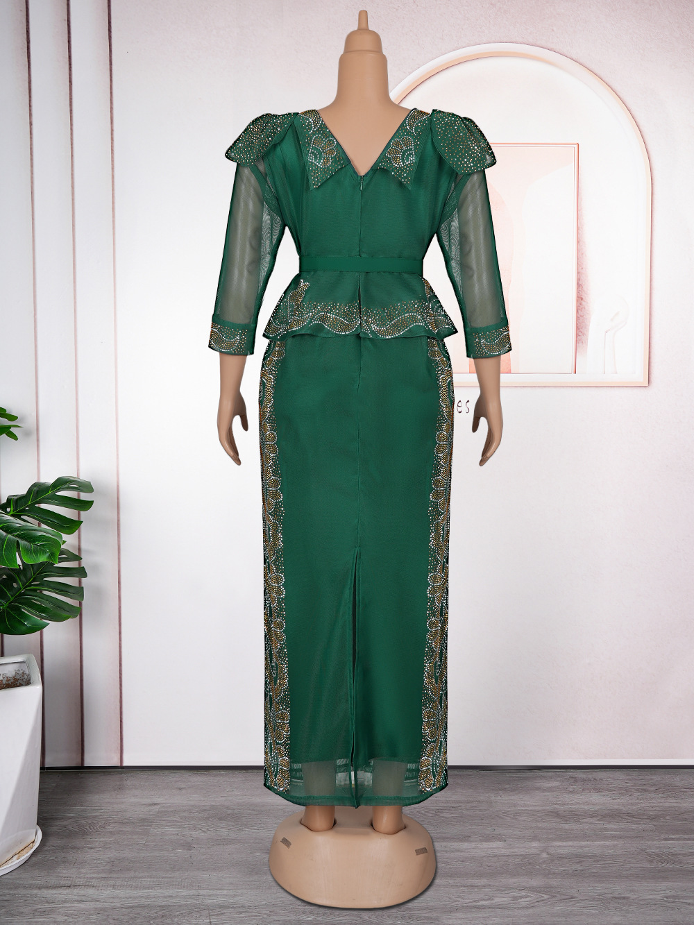 African Plus Size Fashion Rhinestone Christmas Evening Dress