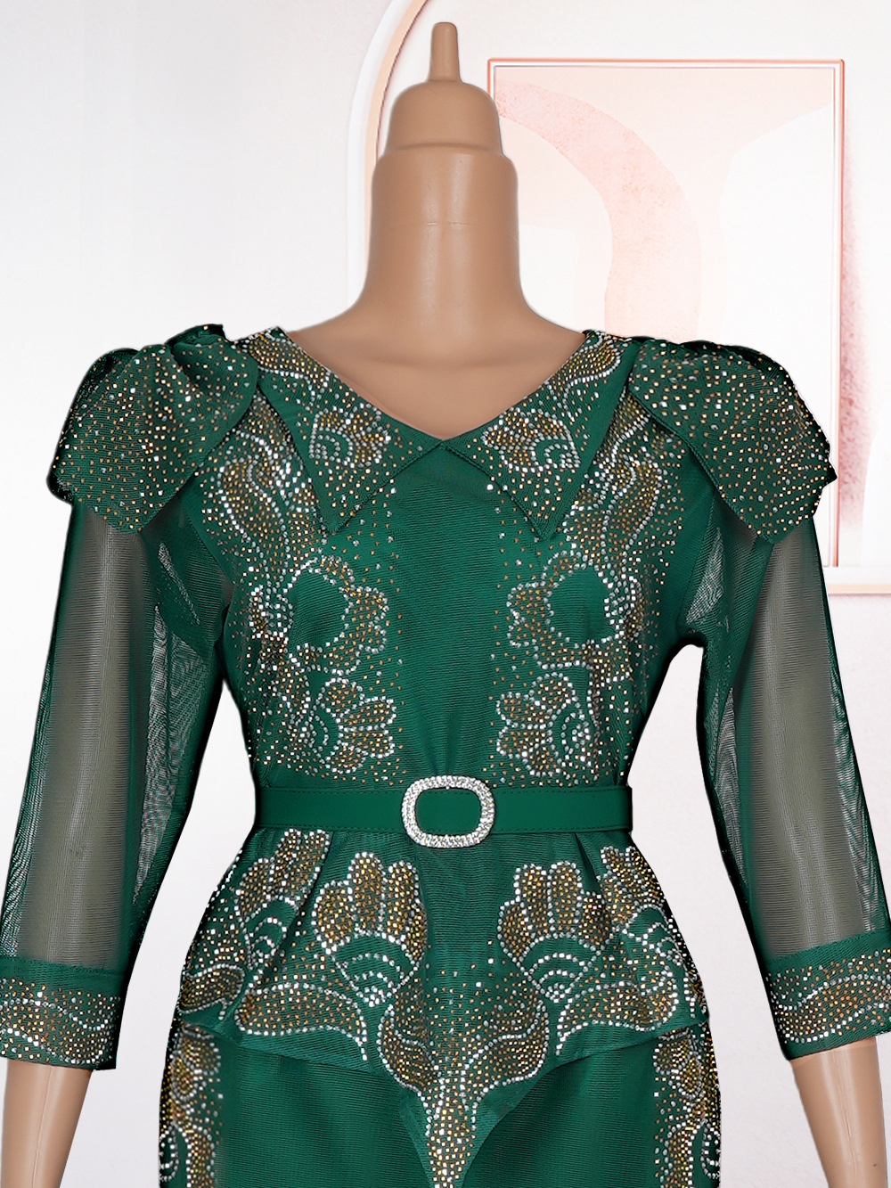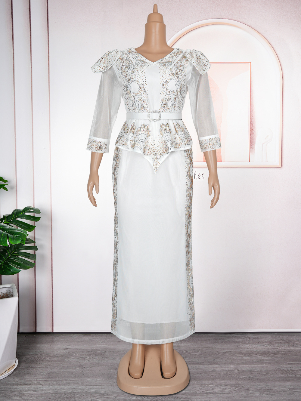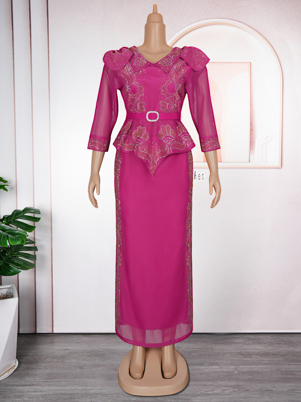 African Plus Size Fashion Rhinestone Christmas Evening Dress